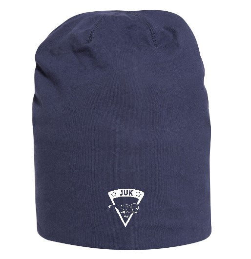 Kaksinkertainen single jersey pipo jossa flatlock saumat.